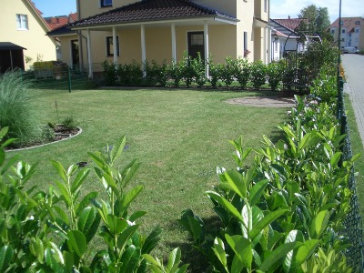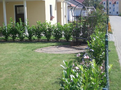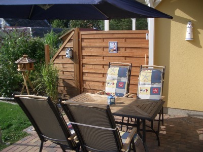 Zur Ferienwohnung gehört ein eigener ca. 100 qm großer Garten von wo aus der herrliche Sonnenuntergang genossen werden kann.